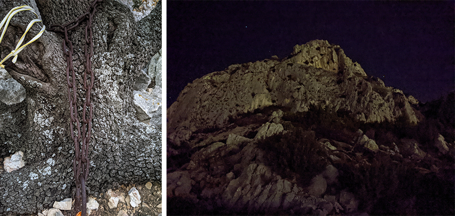 Faron téléphérique donc. Secteur de couenne. Tes cotations nous permettent de grimper du 4a au 6a+ tout en profitant de la vue sur la baie de Toulon. On découvre qui est en forme, qui est en reprise, on se raconte nos petites blessures, nos covid passés… Tout est parfait.