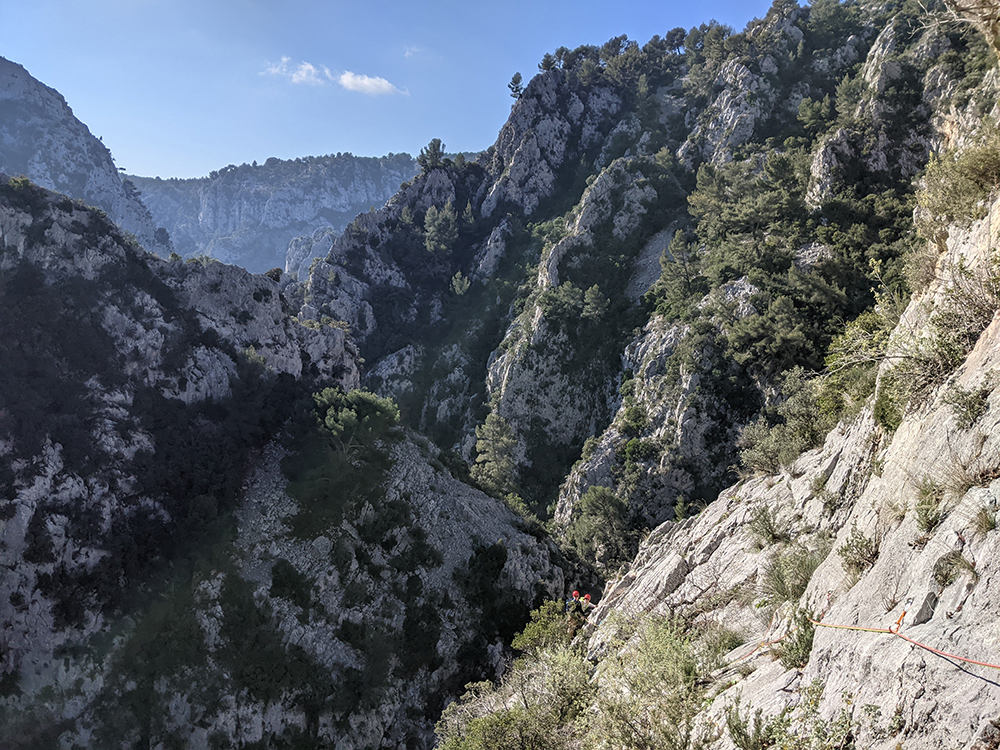 Aujourd’hui, motivés par le soleil, 3 cordées décident de partir dans le secteur Baou faire des petites grandes voies – concept étrange qui selon ma définition très personnelle correspond à des grandes voies de 2 ou 3 longueurs max.