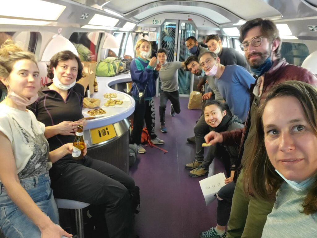 On arrive donc à Paris avec 4h de retard – après avoir voyagé dans le wagon bar, servi des canapés de restes aux contrôleurs, escaladés les tabourets et tout ce qu’on trouvait – heureux d’avoir partagé tout ça.