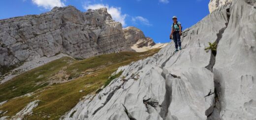 On marche. On remonte un pierrier. On suit le balisage jaune. On fait le tour du plateau, 1 fois, 2 fois, 3 fois. Bon c’est officiel, topo, tu nous a perdu. 2h – Vs 25 min initialement prévues pour arriver à notre voie – plus tard, on s’encorde et le clic des dégaines cliquète enfin.