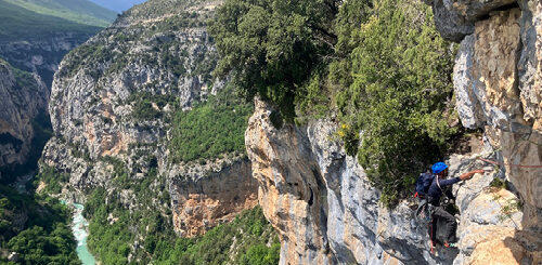 Cordes au sac et sac sur les épaules on se lance gaiement vers de nouvelles aventures vertigineuses, direction : Destel. Un secteur au fond des gorges éponymes qui nous promet de nous faire prendre de la hauteur.
