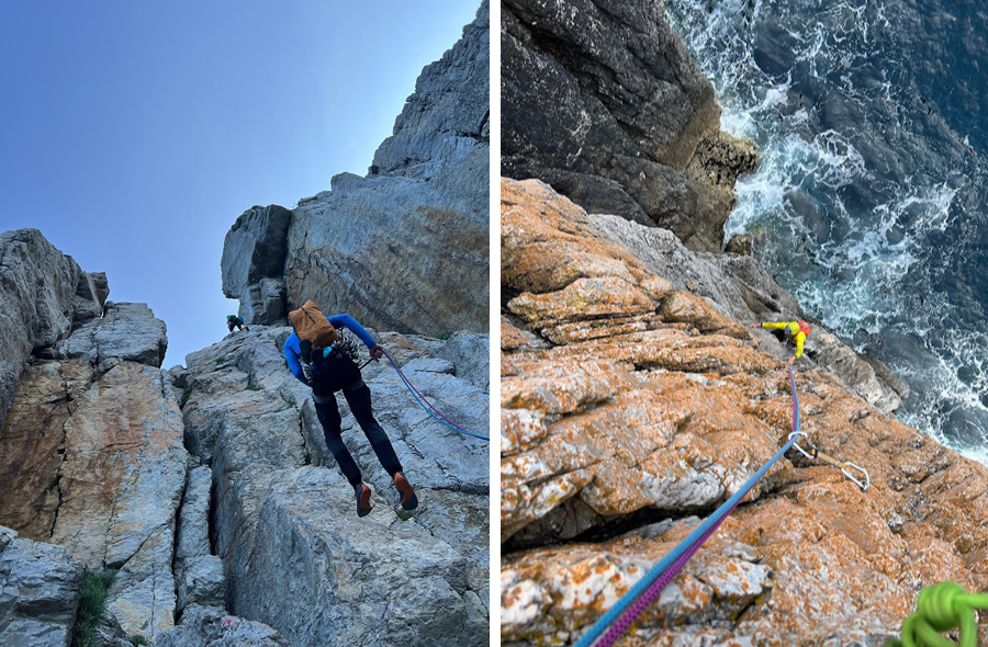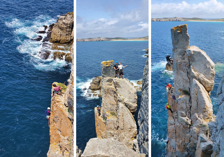 Super expérience à PenHir : de la grimpe, des baignades, des apéros et des repas dignes de restaurants étoilés. Tout ça sous une météo estivale et avec un groupe attentif et des conseils avisés en couenne ou pour les manip en grande voie.