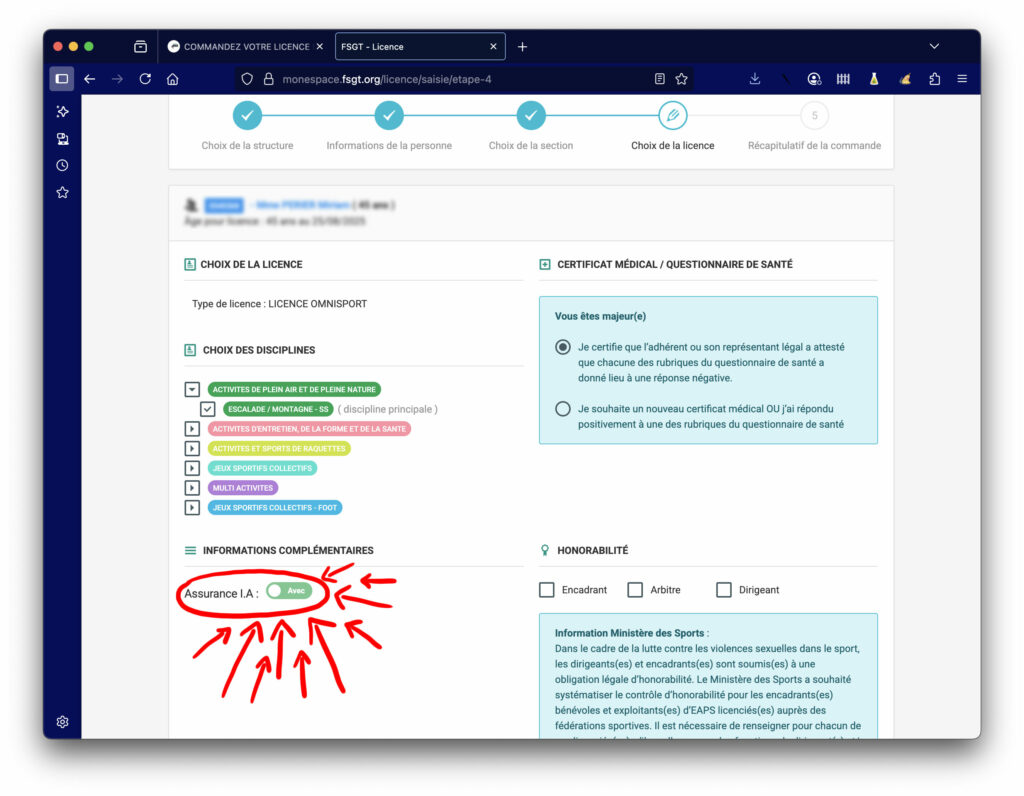 Une fois tout ça validé, vous recevrez un mail de confirmation de « Pré-demande de licence » de la FSGT. Une fois que l'équipe inscription du club aura validé votre demande, payé les commandes, etc, vous recevrez un nouveau mail et pourrez télécharger votre licence, WOUHOU \o/