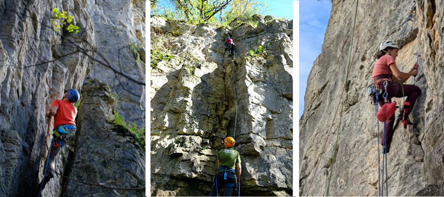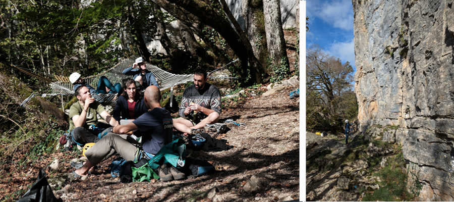 Le lendemain matin, un ciel gris et pluvieux nous accueille, laissant tout le monde dans l’attente d’aller grimper. Finalement, le soleil fait son apparition vers 10h, marquant le début d’une belle journée d’escalade ! La falaise s’anime rapidement avec les premières voies pour Alice, Eurydice, Benjamin, Ina, Raphaëlle et Tanguy, qui se lancent avec courage et détermination, chacun·e découvrant les sensations de l’escalade ou perfectionnant ses mouvements. Pendant ce temps, certains (Michele et Audrey) se consacrent à l’ouverture et à l’entretien de nouvelles voies.