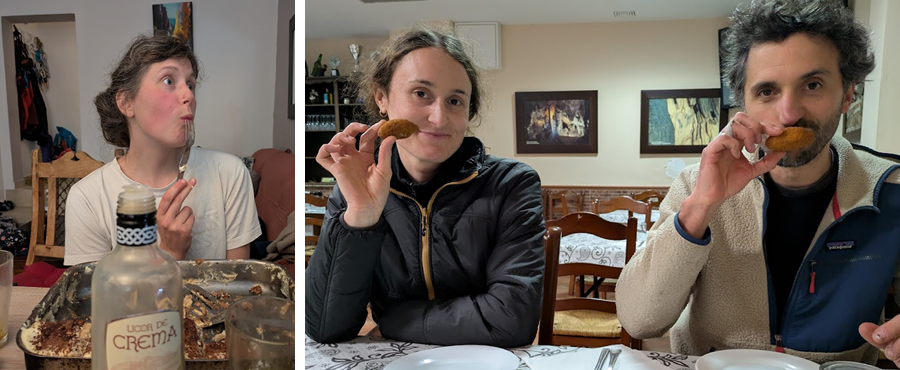 La team ayant pris la voiture pour aller grimper à Turon (comme l’animal, pas le nougat) arrive à caler une opération croquetas à Ardales sur le retour de la falaise. Un restau avec une grande salle vide à la déco désuette, Jesus au mur au-dessus de l’extincteur… on sait qu’on est au bon endroit (même si les flamenquins s’avèreront décevants). On arrive à peine en retard pour le dîner à l’Olive branch… on s’est dit qu’on allait manger “au restaurant” pour changer et on dîne de fajitas et de riz au haricots rouges (hmmm).