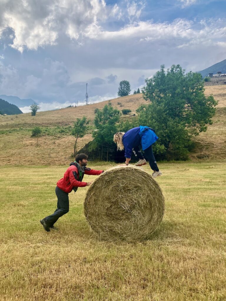 Devant nous : des grosses montagnes qui ressemblent à des mille-feuilles, des jolis ponts qui menacent de s'écrouler sous nos roues, des prairies vertes avec des fleurs multicolores, des bottes de paille qui nous feront rouler.
