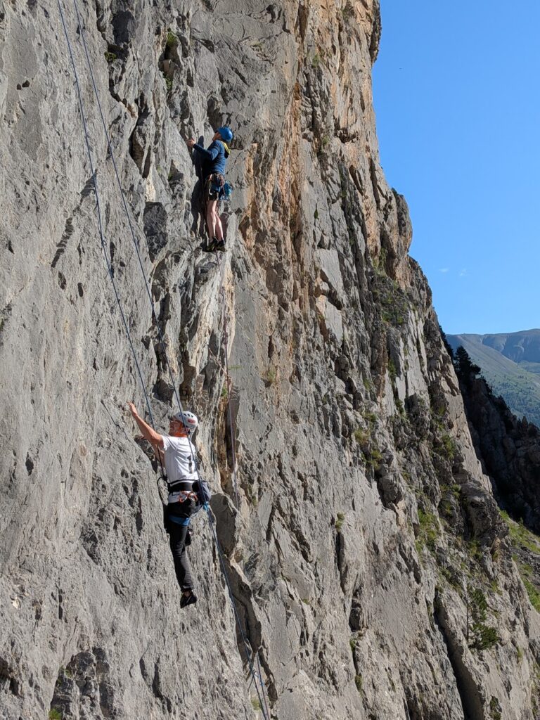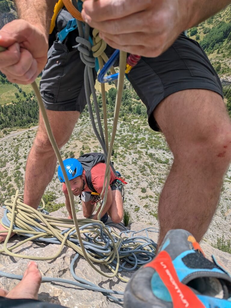 Et alors ? Alors, bah ils sont super. Pas de zippette, pas de trou dans les doigts à la fin de la journée. On est sur un rocher qui casse un peu, mais de grande qualité. Rassurez-vous, on arrive quand même à faire quelques grandes voies (toujours en troupeau de 9), entre les gouttes, les points espacés et les marmottes qui veulent voler nos déjeuners.
