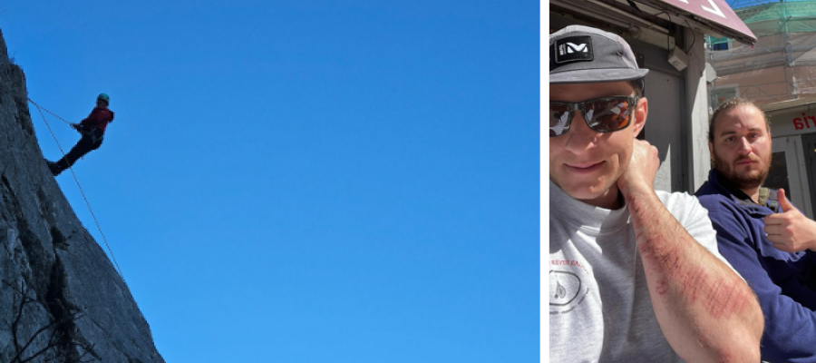 A l’avant-dernière dégaine de sa voie, Olivia s’est pris une branche et a failli perdre une lentille : un saut épique depuis l’œil avant qu’elle n’atterrisse miraculeusement sur son doigt. Obligée de se faire hélicotractée son produit nettoyant en haut de la falaise, digne des plus grandes cascades.