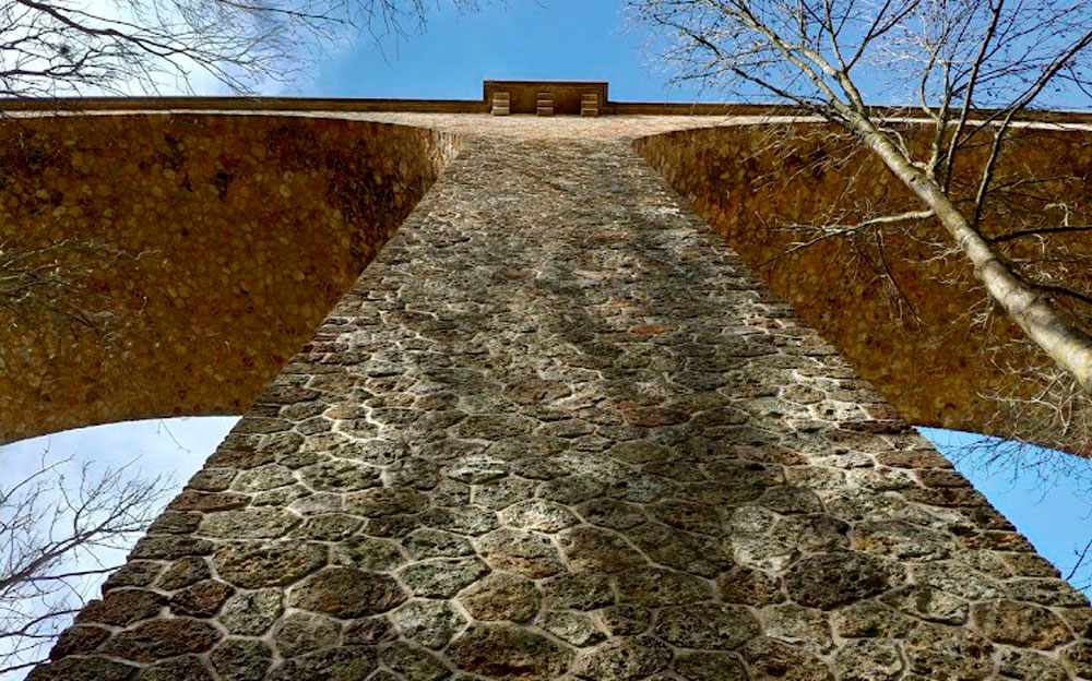 « La plus haute falaise d’île de france », un viaduc en meulière dans un bois, des longues voies verticales ou qui finissent en dévers sous les arches, attention ça pique les doigts.
